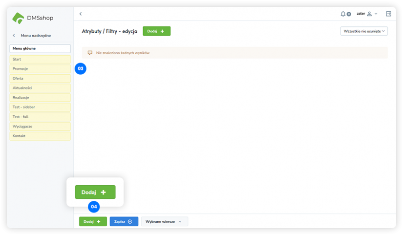 - Dodaj – Zapisuje atrybut lub filtr i udostępnia go w systemie.