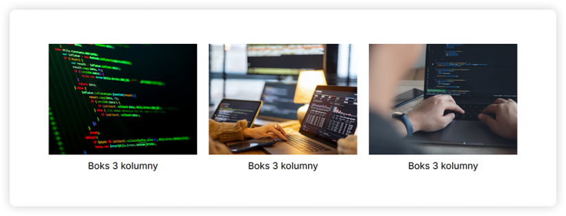 W zależności od wybranego układu boks zostanie automatycznie wyświetlony w 2 lub 3 kolumnach.