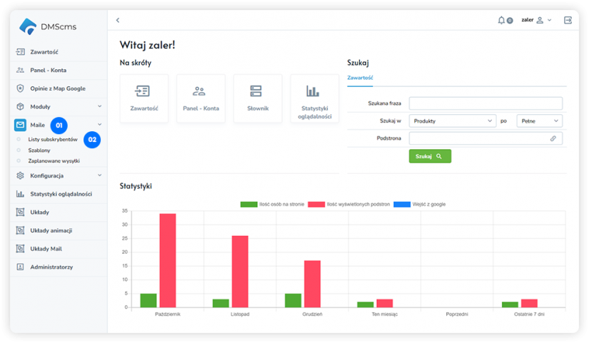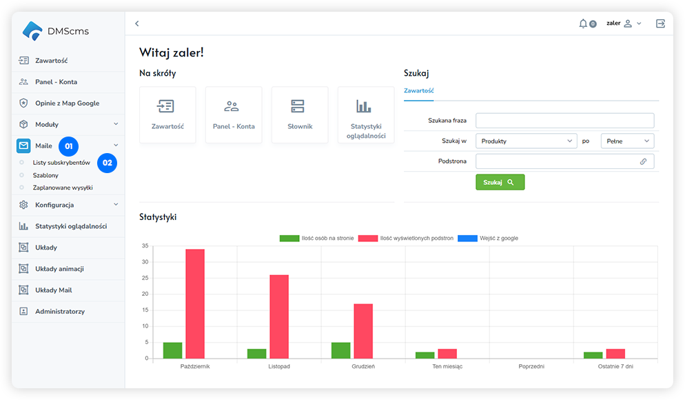 - Po zalogowaniu do panelu CMS wybierz z lewego menu zakładkę