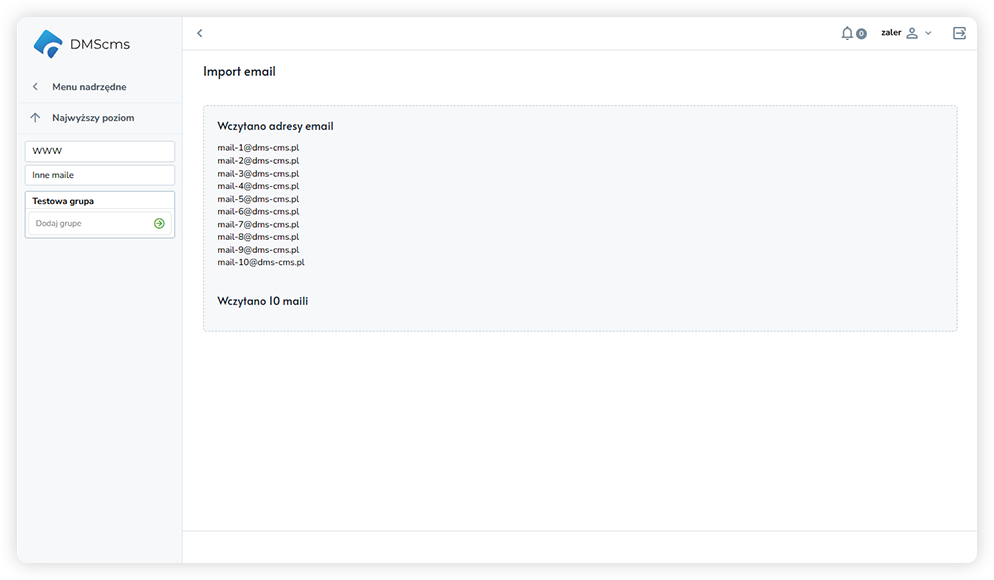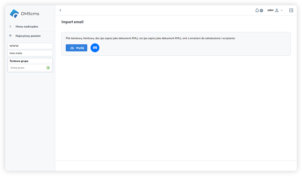 DMScms umożliwia import adresów e-mail z plików zapisanych w różnych formatach, co pozwala szybko dodać większą liczbę odbiorców do wybranej grupy mailingowej.