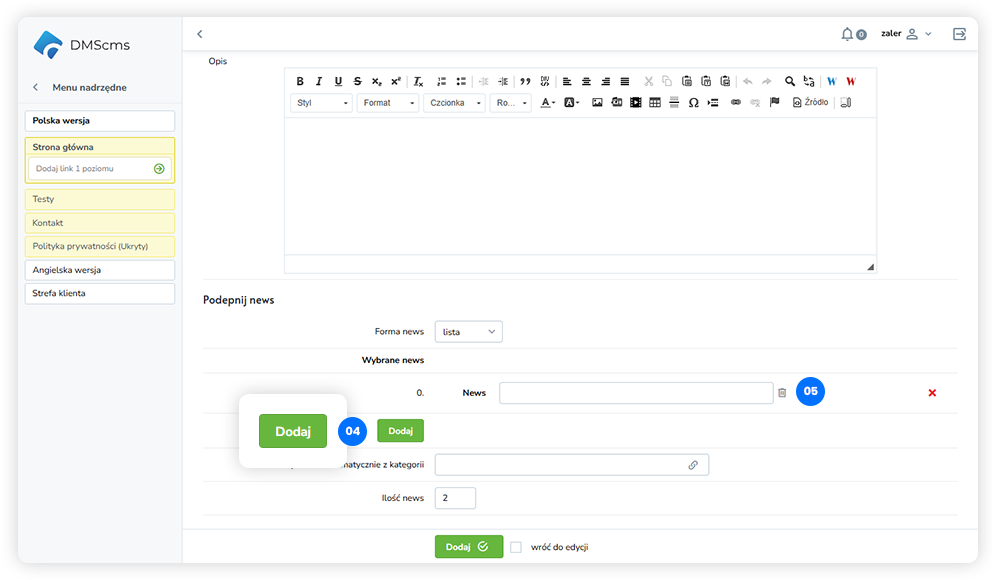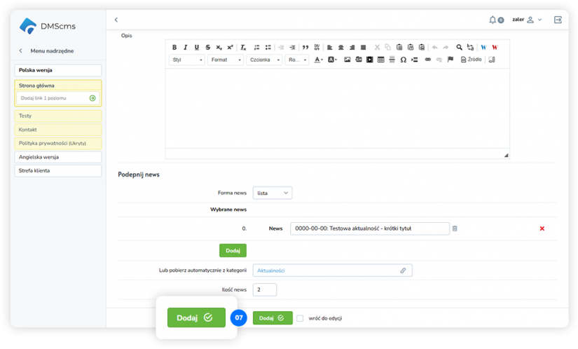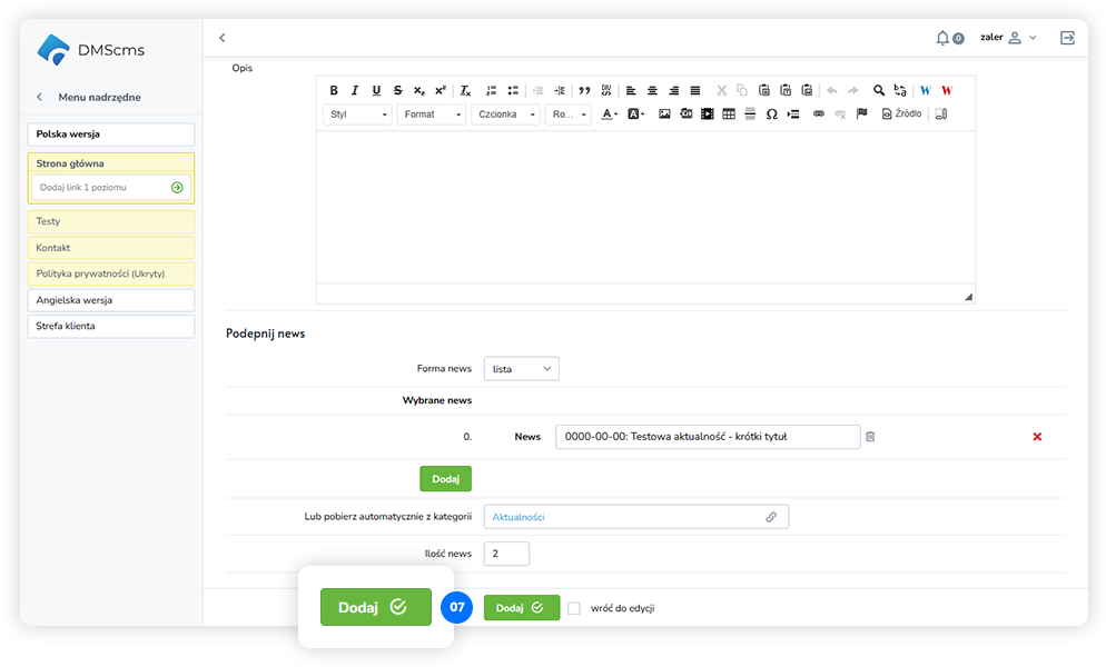 Zapisujemy klikając button Dodaj
