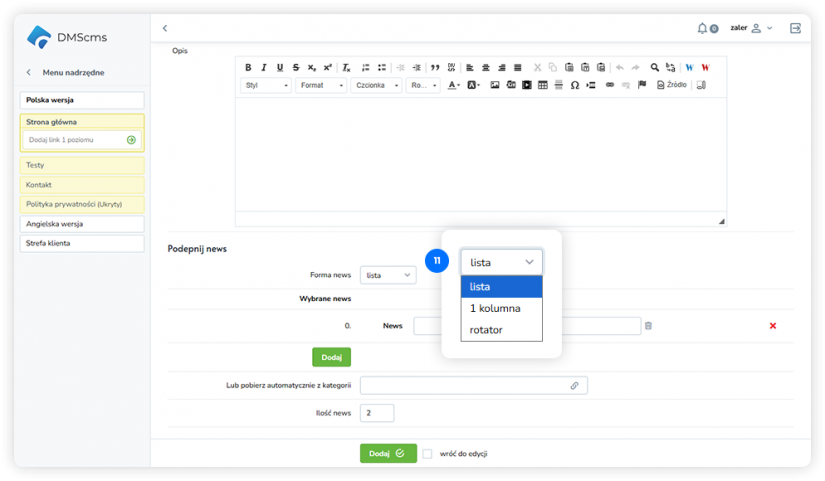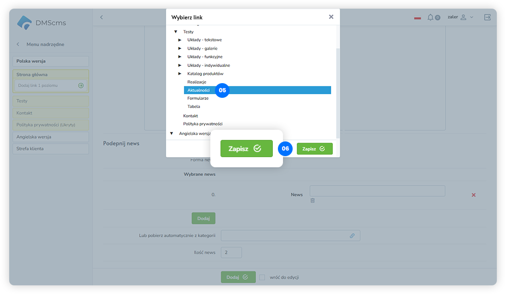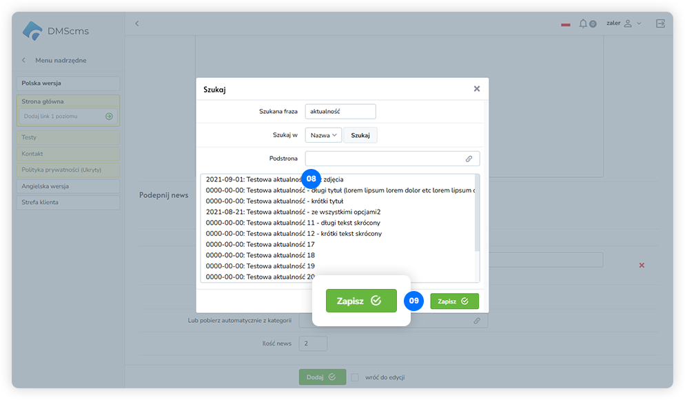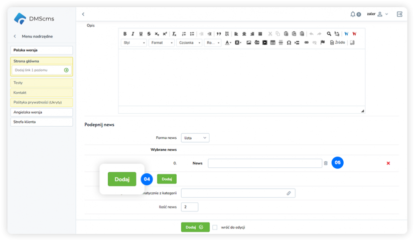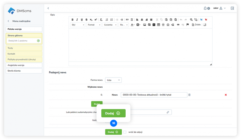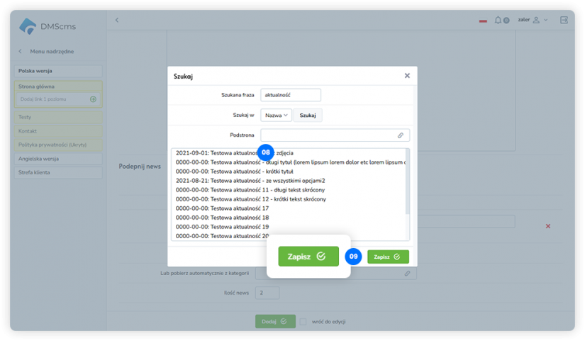 aby dodać kolejne newsy powtarzamy kroki od