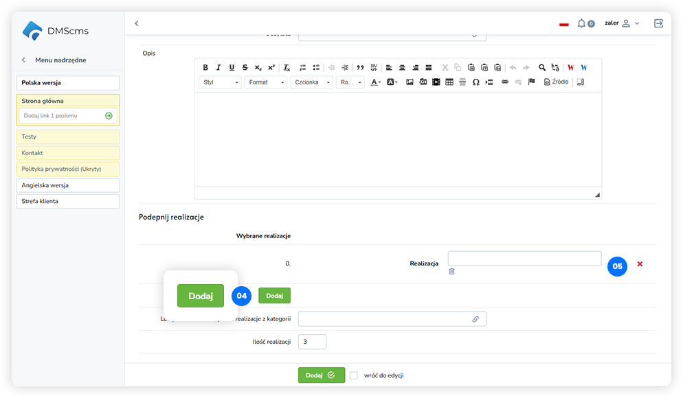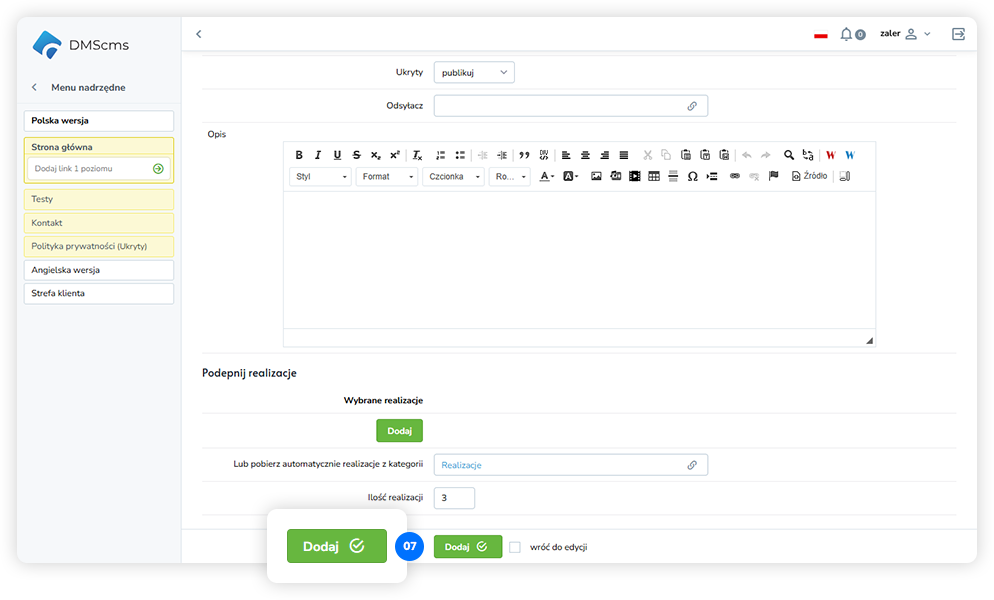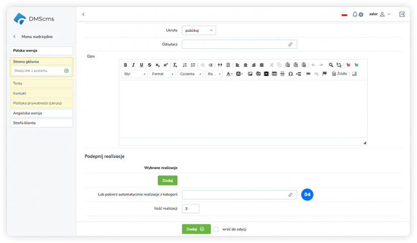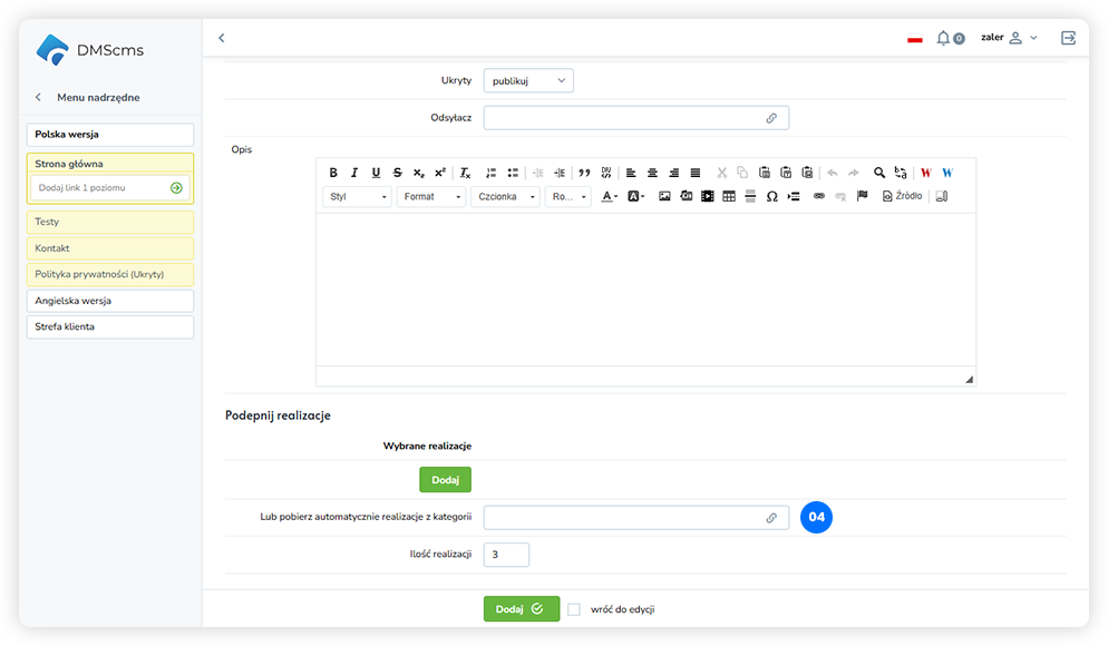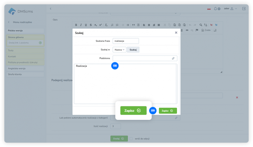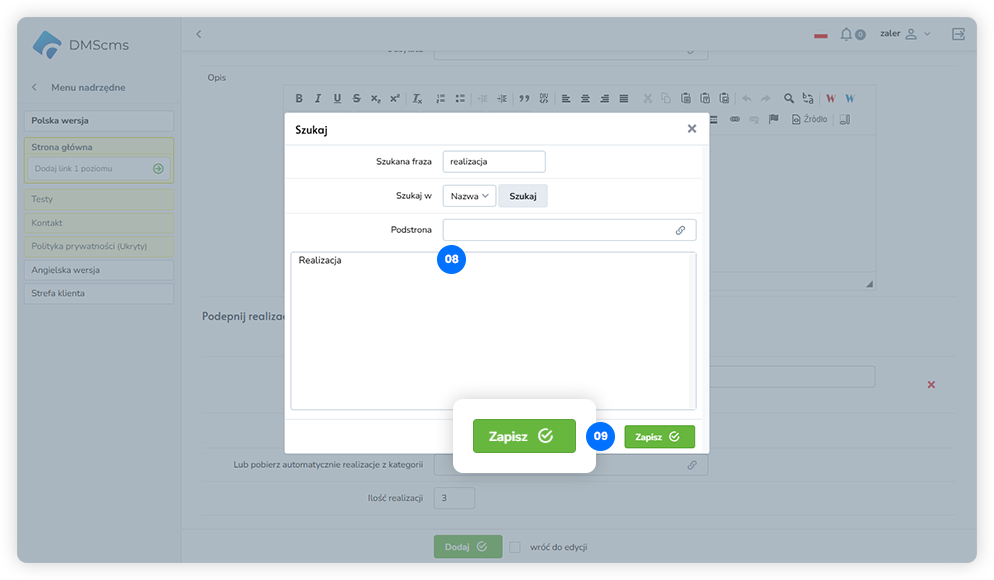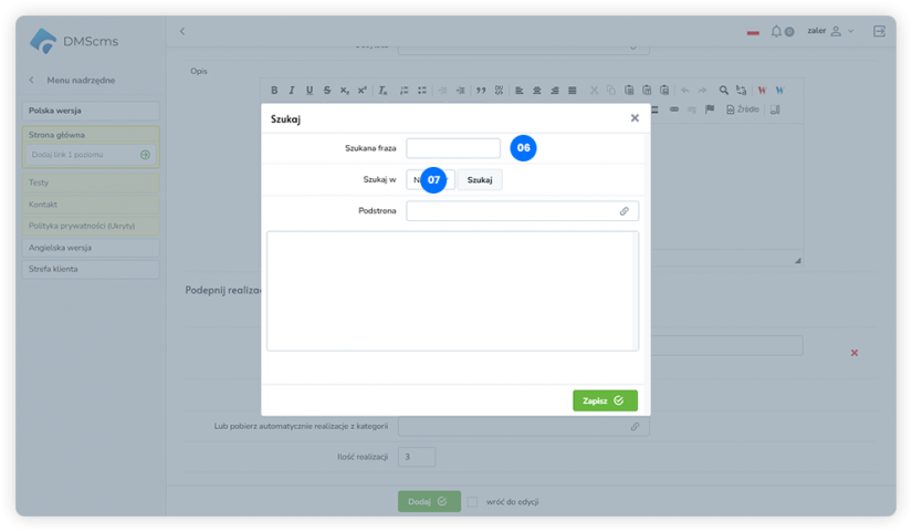 Klikamy w pole Szukana fraza, wpisujemy nazwę