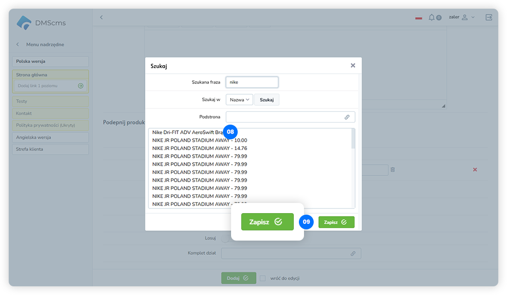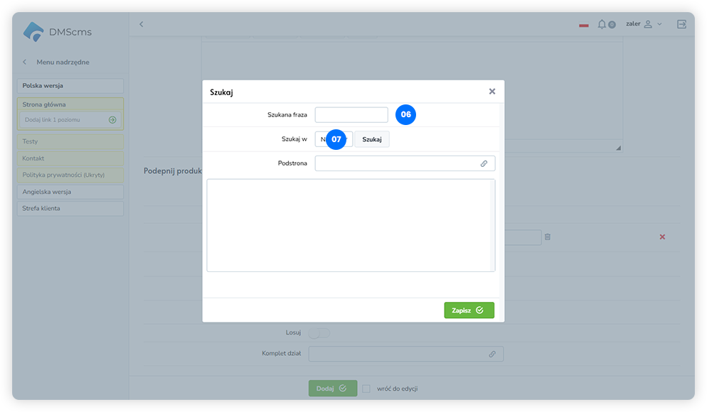 klikamy w pole Szukana fraza, wpisujemy nazwę