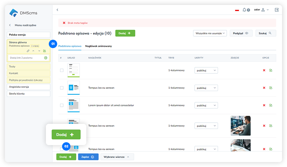 Układ „Podepnij realizacje” w DMScms umożliwia dynamiczne podpięcie i wyświetlanie zrealizowanych projektów lub realizacji firmy na wybranej podstronie.