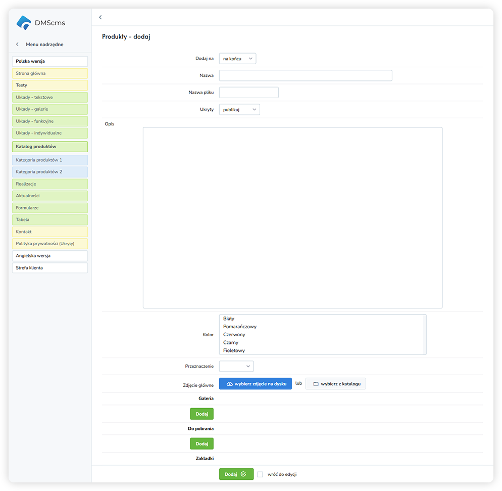 Moduł ten pozwala na tworzenie katalogu produktów oferowanych przez firmę. Każdy katalog jest konfigurowany indywidualnie wg potrzeb klienta. Można go wykorzystać do prezentacji produktów, szkoleń lub innej dowolnej formy w której ułatwi administrację stroną www.