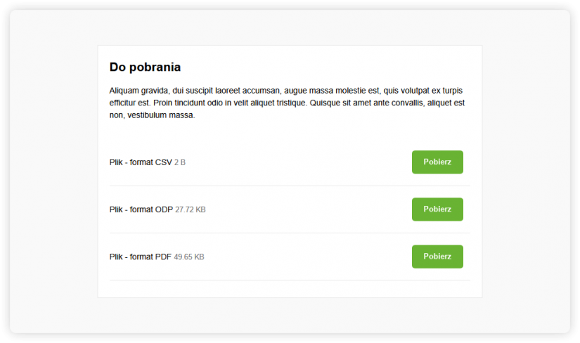 Układ przeznaczony do udostępniania plików, takich jak katalogi, instrukcje, regulaminy, cenniki czy materiały promocyjne. Umożliwia szybkie i czytelne przekazanie dodatkowych zasobów klientom bezpośrednio z poziomu newslettera, zwiększając jego wartość informacyjną i użytkową.