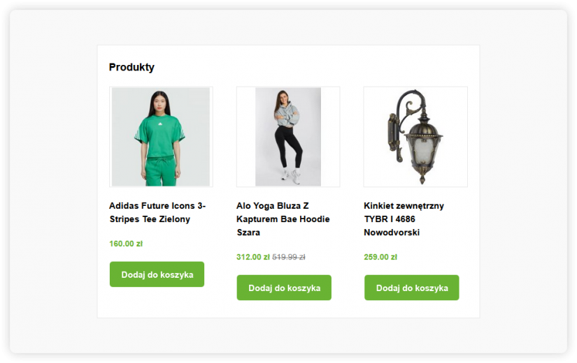 Opis – Treść wprowadzająca do sekcji produktów, np. opis promocji lub krótkie hasło marketingowe.