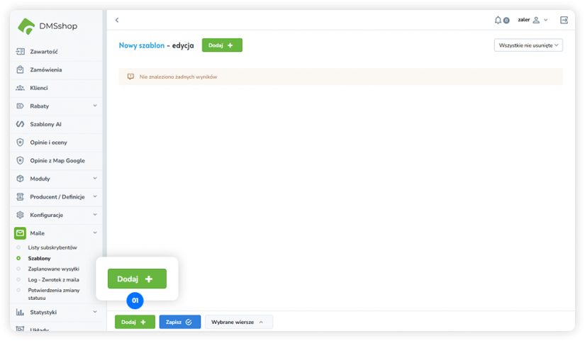 Dodaj – Umożliwia ręczne dodanie wybranego produktu do newslettera.