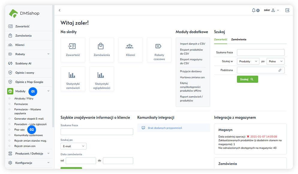 Po zalogowaniu do panelu DMSshop należy wykonać następujące kroki: