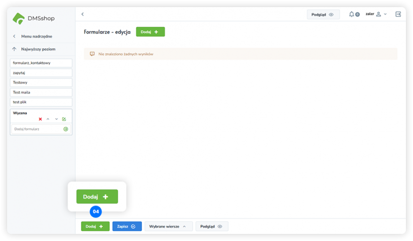 Formularze w DMSshop pozwalają na tworzenie dowolnej liczby formularzy, które mogą być wykorzystywane na stronie w różnych wykorzystaniach — od prostych formularzy kontaktowych po rozbudowane formularze zapytań i zgłoszeń.