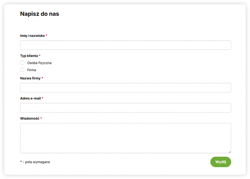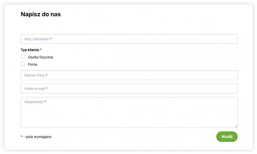 Jeżeli użytkownik wybierze rodzaj klienta „Firma”, wówczas może zostać wyświetlone dodatkowe pole NIP.