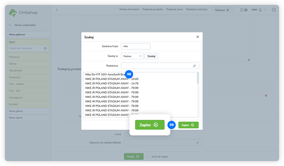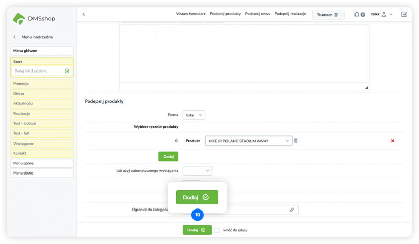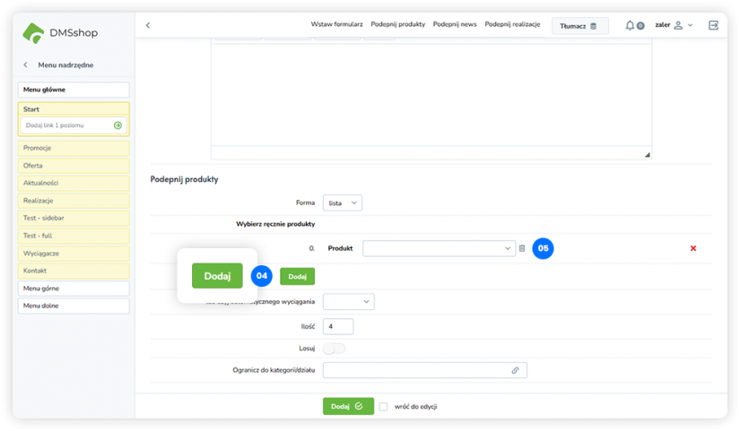 Dzięki temu rozwiązaniu w prosty sposób dodasz do treści strony elementy bezpośrednio z katalogu produktów. DMSshop automatycznie pobiera aktualne dane produktowe, co pozwala tworzyć dynamiczne sekcje sprzedażowe bez konieczności przygotowywania osobnych treści.