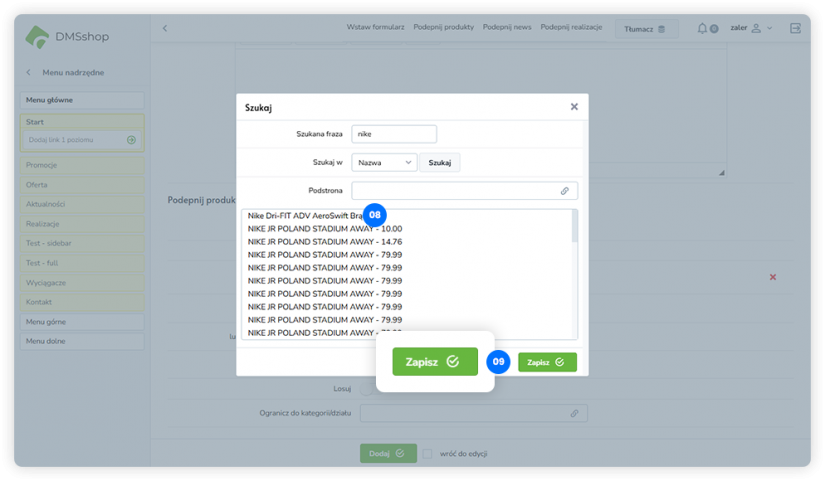 Kliknij „Zapisz”, aby dodać wybrany produkt do układu.