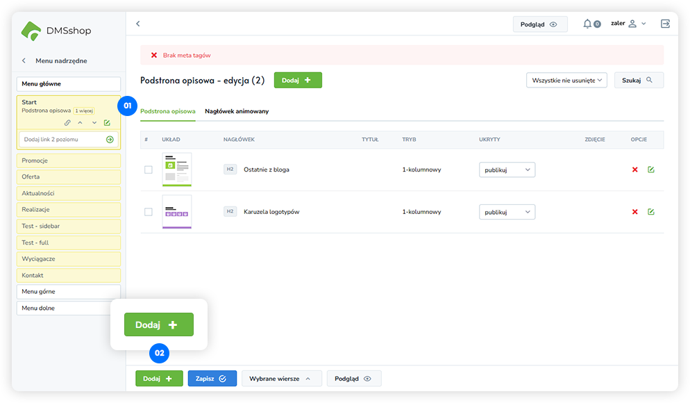W zależności od wybranego układu boks zostanie automatycznie wyświetlony w 2 lub 3 kolumnach.