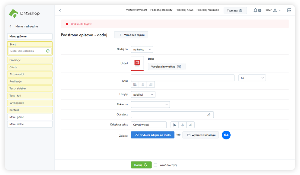 Kliknij „Wybierz zdjęcie na dysku” lub wybierz zdjęcie z katalogu.