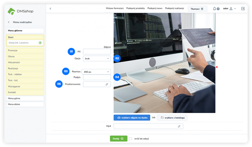 Przekierowanie – adres lub podstrona, do której użytkownik zostanie przeniesiony po kliknięciu zdjęcia.
