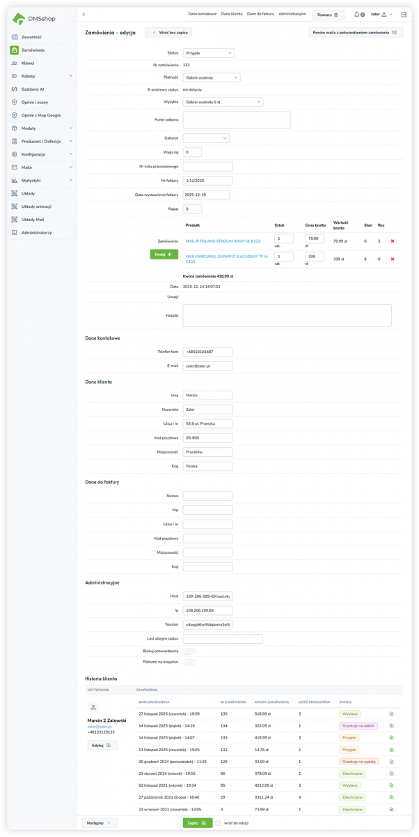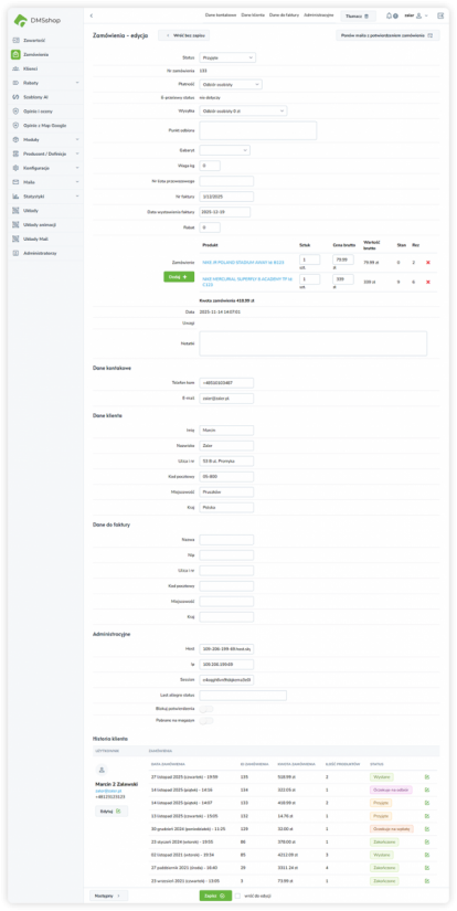W systemie DMSshop po złożeniu zamówienia istnieje możliwość jego dalszej edycji w zakresie zawartości produktowej. Funkcja ta pozwala na elastyczne reagowanie na potrzeby klienta oraz korekty realizacyjne bez konieczności anulowania i ponownego składania zamówienia.