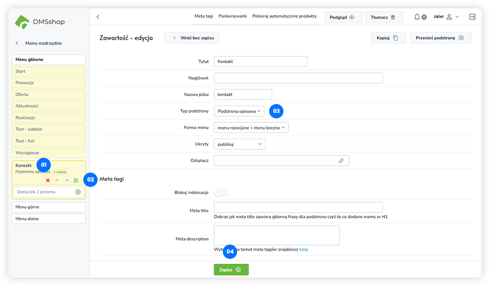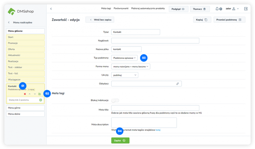 Typ podstrony w DMSshop to jedno z kluczowych ustawień określanych podczas tworzenia nowej podstrony. Każda podstrona pełni określoną rolę, która wpływa na sposób dodawania treści, dostępne funkcje oraz sposób prezentacji danych na stronie.